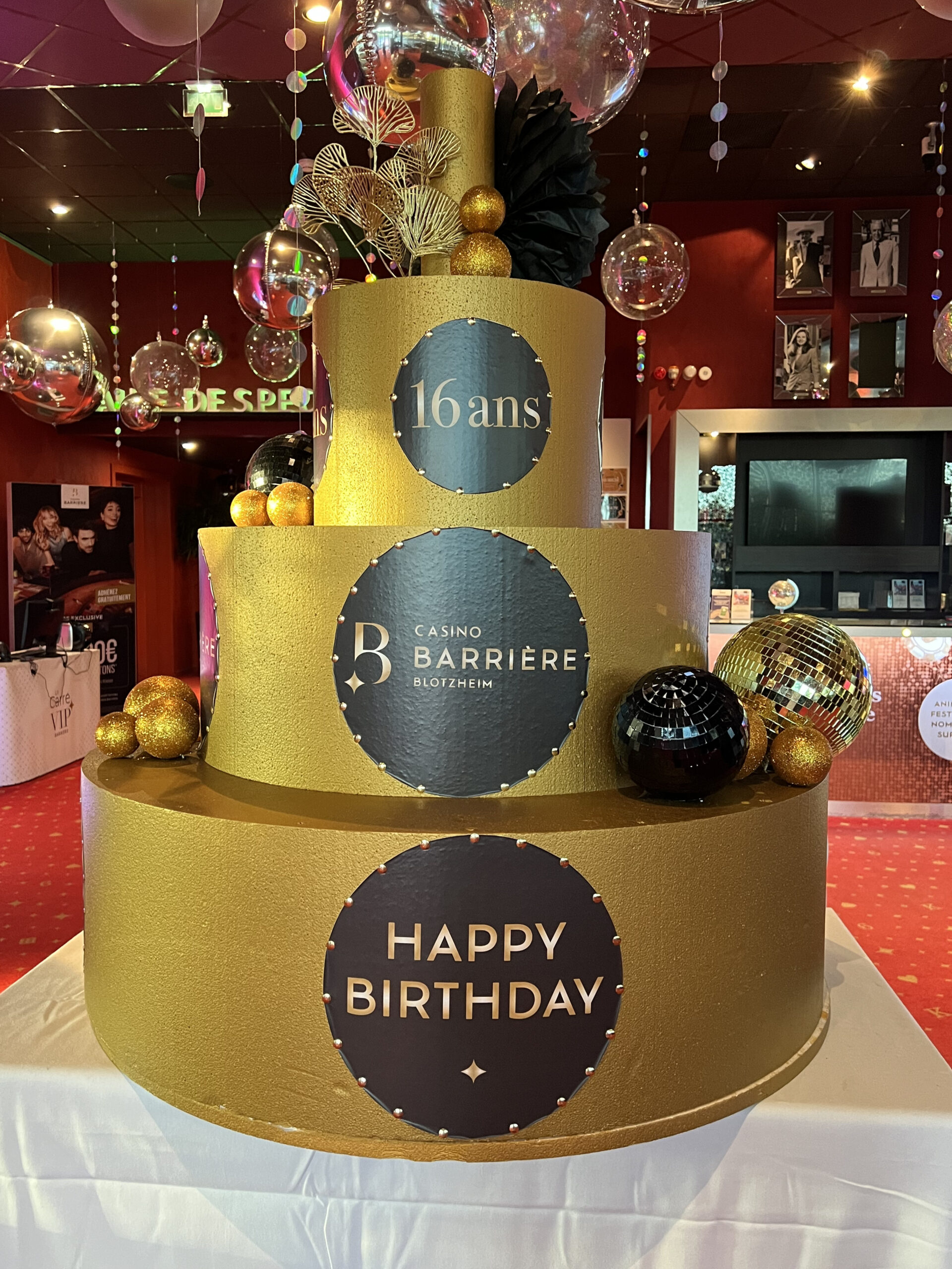 Pour célébrer ses 16 ans, le Casino de Blotzheim nous a confié la mission de créer une décoration « Glitter, strass et paillettes« . Ce thème a illuminé l’espace, apportant une ambiance festive et raffinée, parfaite pour un anniversaire ou encore des fêtes comme Noël et le Nouvel An.